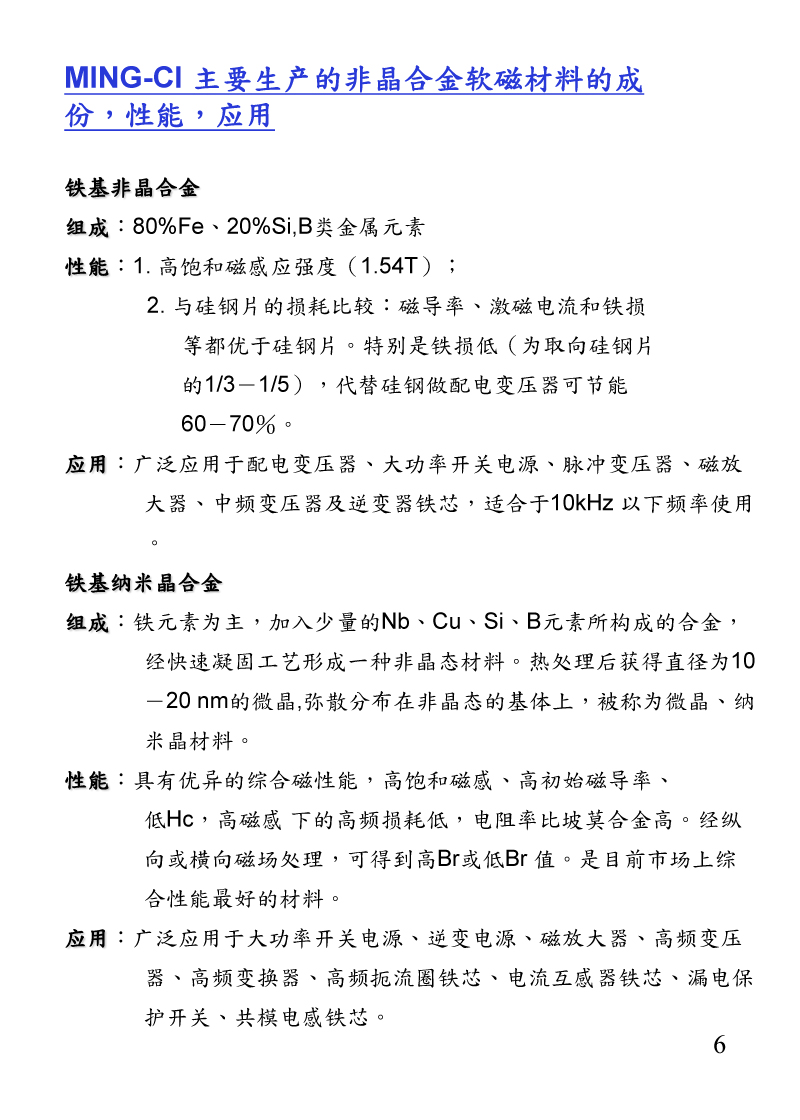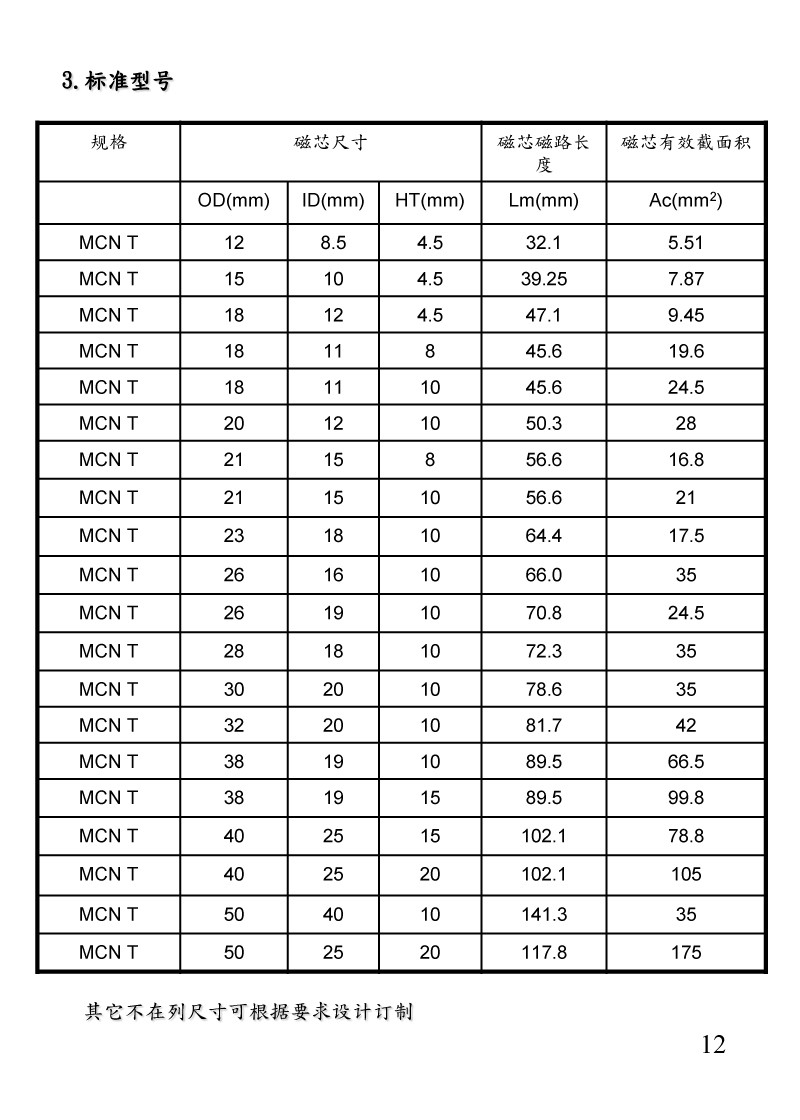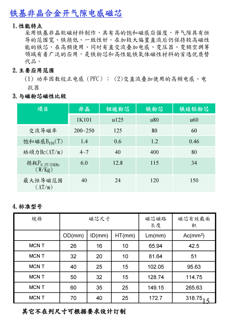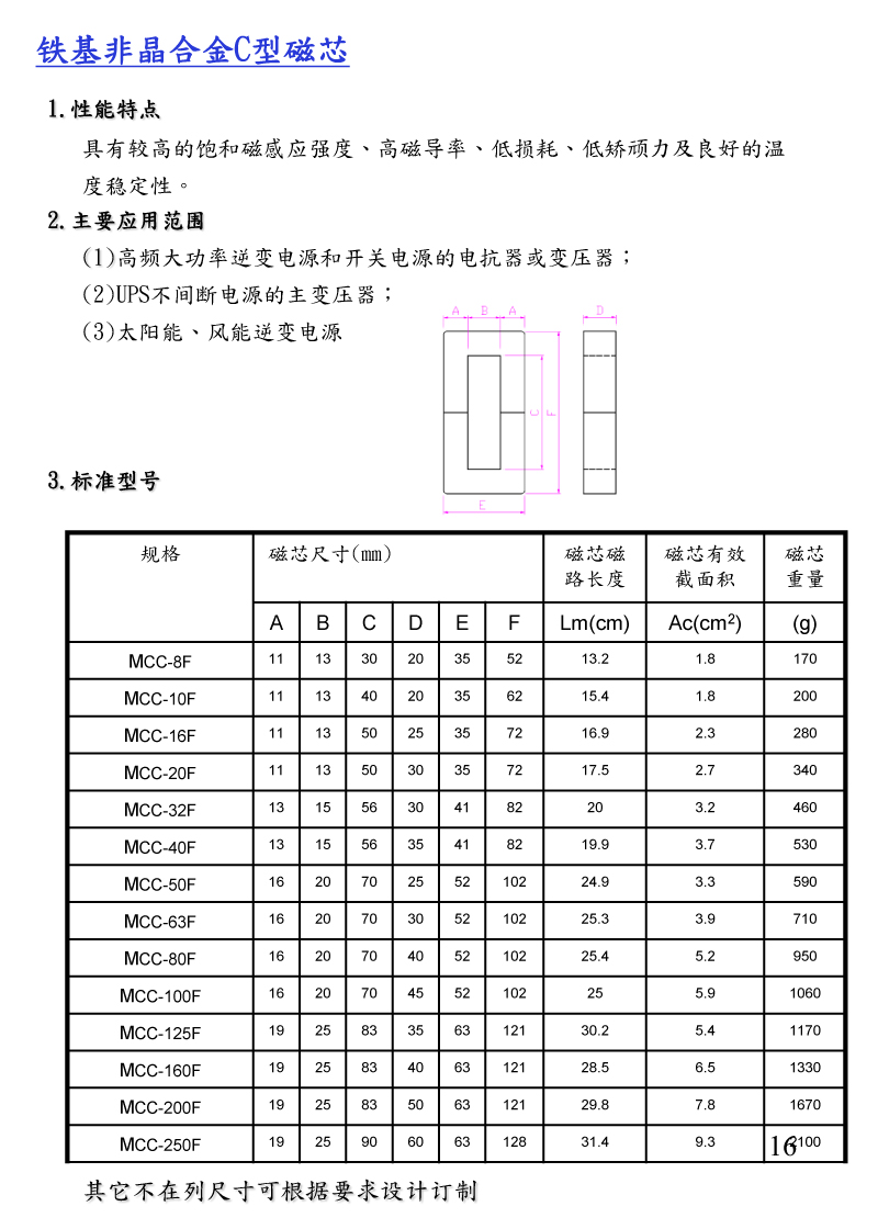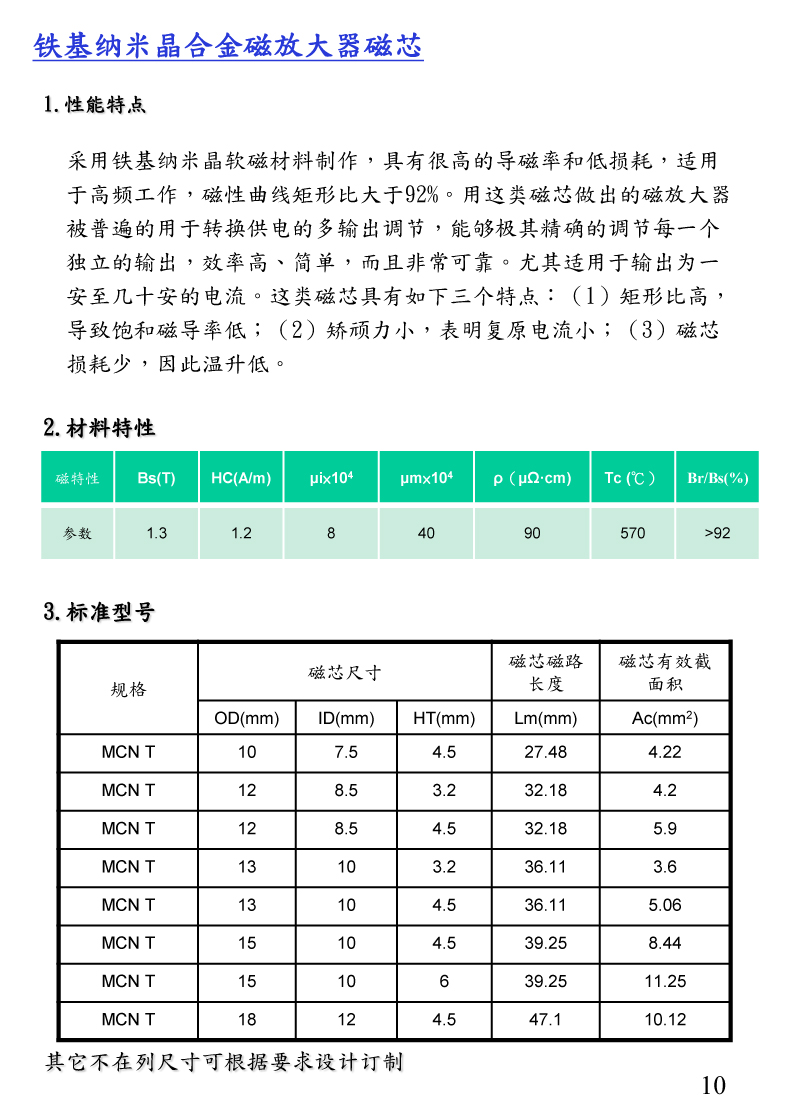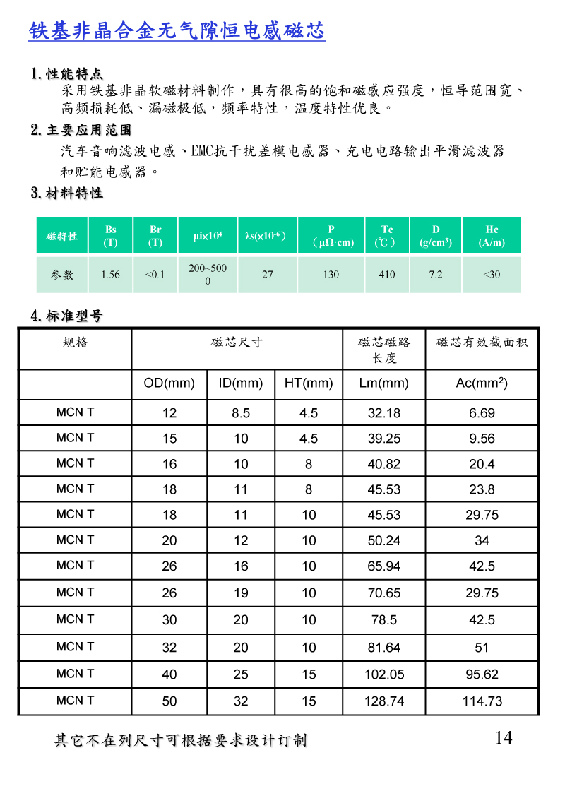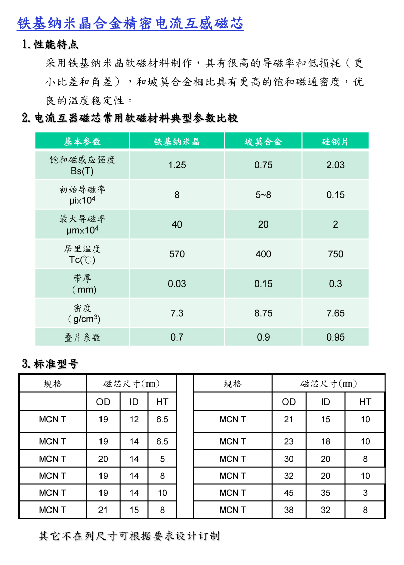 Product Series :MCA / TYPE (Amorphous and Nanocrystalline Cores)