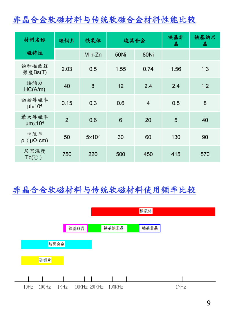 Nanocrystalline (also known as ultramicrocrystalline) materials have high saturation magnetic induction, high permeability, low coercivity, low high-frequency loss, good hardness, wear resistance, corrosion resistance, good temperature and environmental stability. Their excellent comprehensive properties replace the application of permalloy, silicon steel sheet and ferrite in power electronics technology, showing the characteristics of small size, high efficiency, energy saving, etc, It has the best cost-effectiveness among all current metal soft magnetic materials.