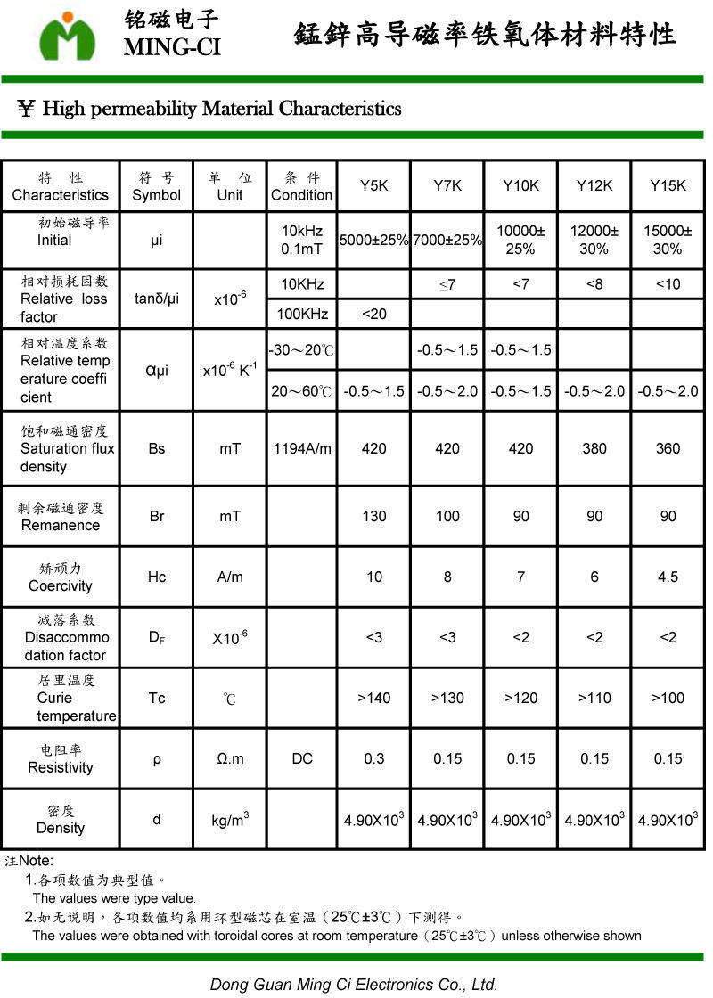 · High permeability, wide frequency, and well temperature characteristics, thermostable impact, high stability.