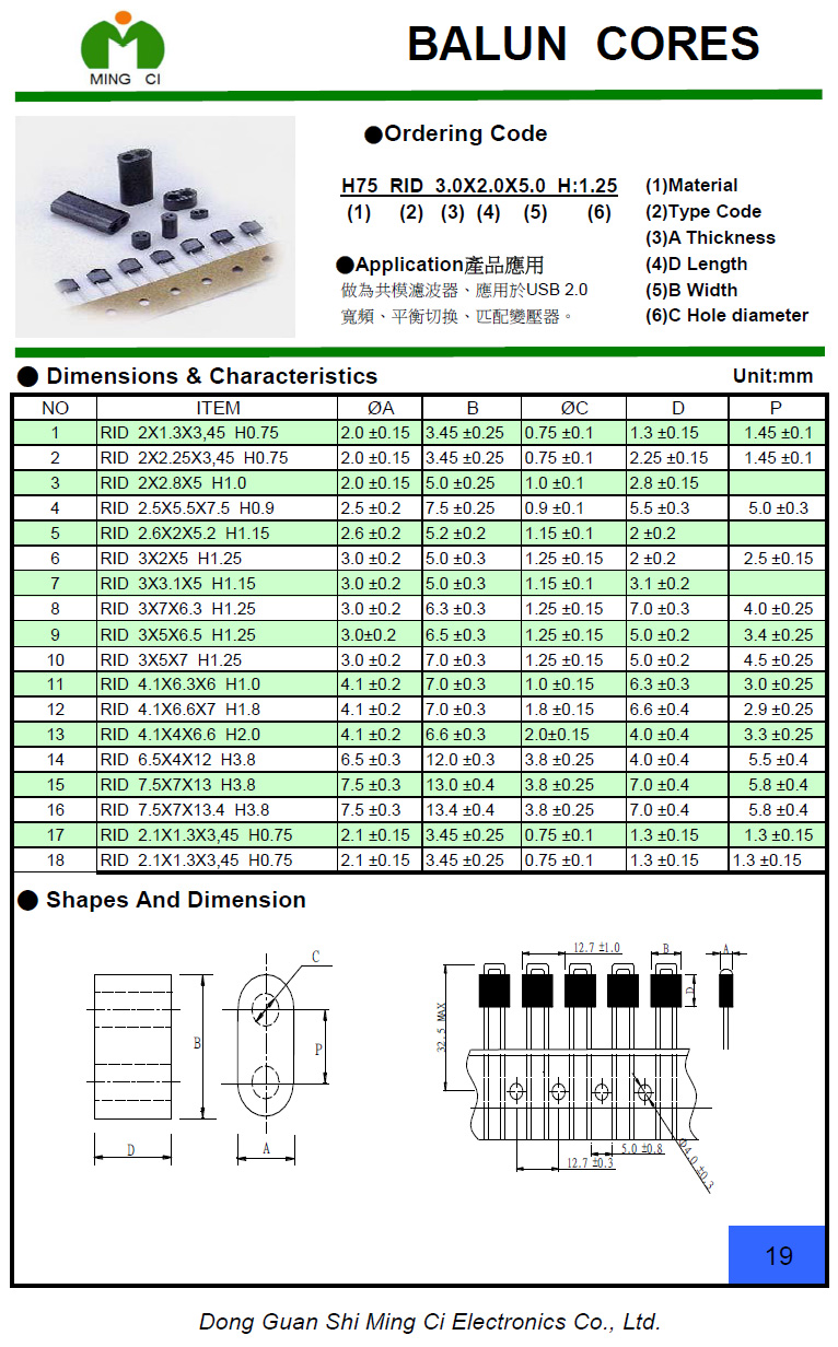 Product Series:RID TYPE (Double Holes Balun Cores)