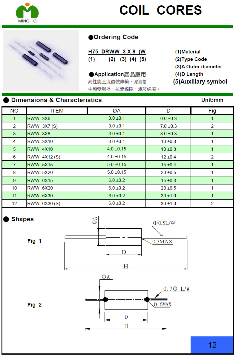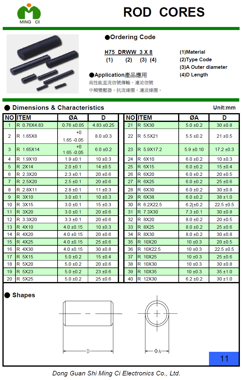 · Used in conjunction with spiral coils to enhance inductance, with high Q value and good temperature characteristics.