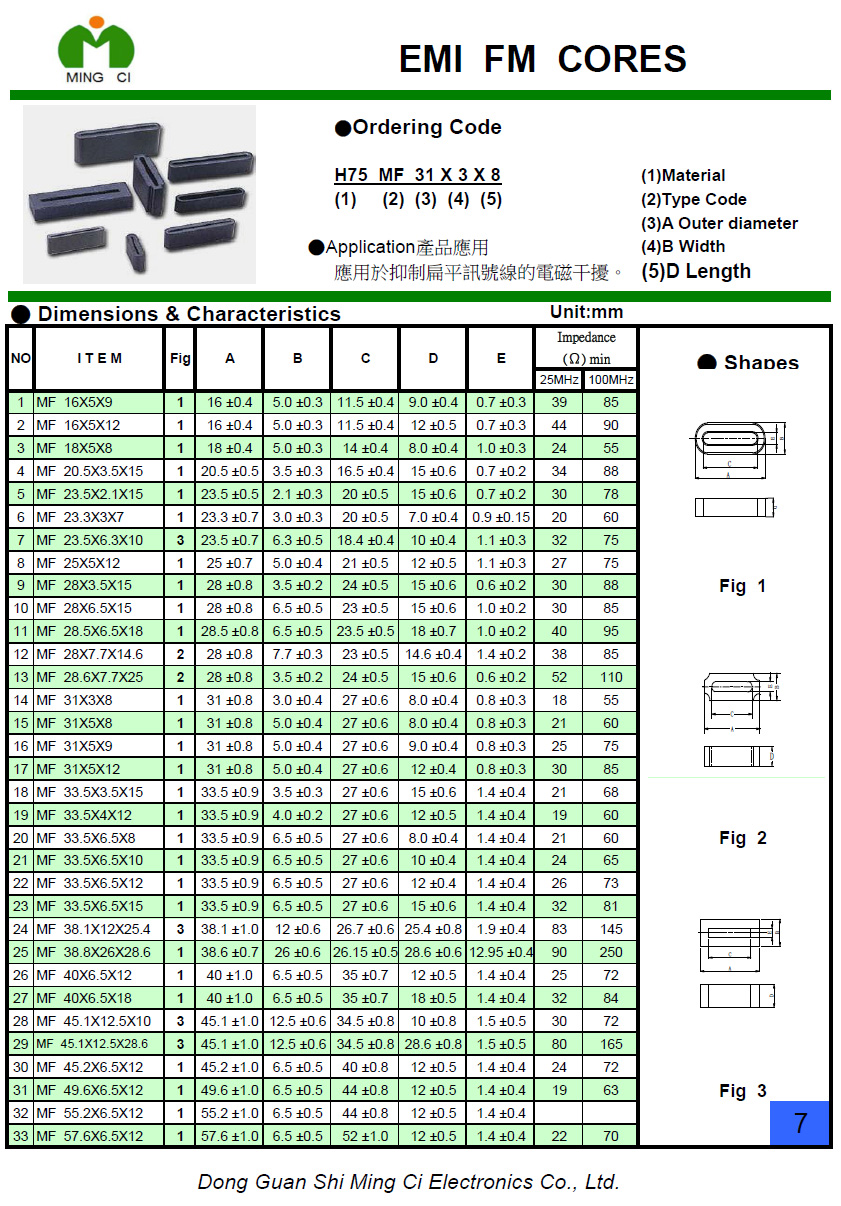 Product Series :MF TYPE (Runway Shape Cores For Flat Cable)